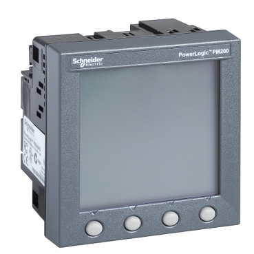 Compteur d’énergie compact PowerLogic série PM200 avec écran LCD rétroéclairé vert pour une surveillance fiable de l’énergie électrique dans les applications montées sur panneau.