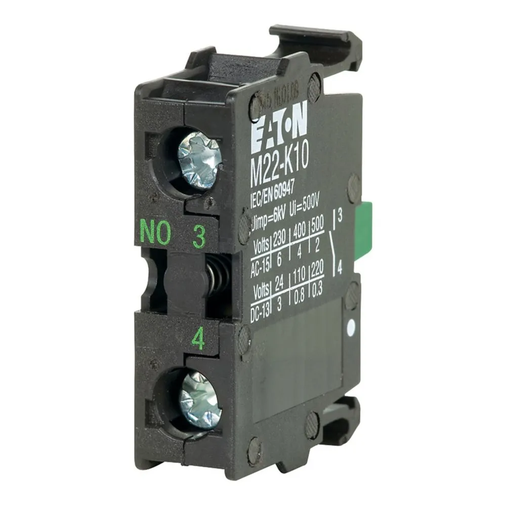 Bloc de contact Eaton M22-K01, 22,5 mm, NC (normalement ferm?), raccordement ? vis avant, actionneur noir, IP66, NEMA 4X/13, entra?nement positif.