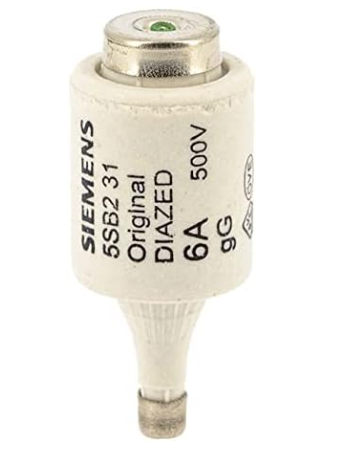 Fusible Siemens 5SB231 DIAZED, taille DII, E27, 6 A, 500 V CA, type gG, pour une protection s?re des c?bles et des lignes. Id?al pour les circuits basse tension des installations r?sidentielles et industrielles.