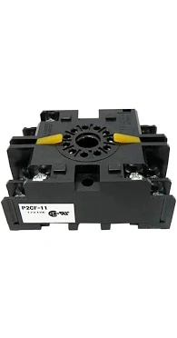 Prise relais/minuterie Omron P2CF-11-E, 11 broches, bornes ? vis, montage sur rail DIN ou en surface, compatible avec les s?ries H3CR, H5CX et H7CX.