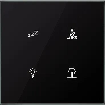 Panneau tactile en verre SpaceLogic LSSMBU04NP de Schneider Electric, Modbus, 4 boutons tactiles configurables. Idéal pour les applications hôtelières telles que l’éclairage, le CVC, la ventilation et la gestion de l’énergie, avec une interface moderne et personnalisable.