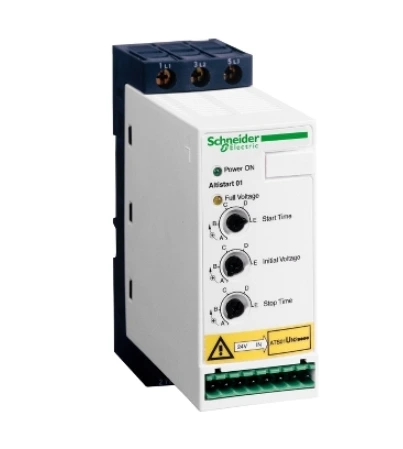 Altistart 01 Soft Starter, 12A, 380?415V, 5.5kW motor rating, DIN rail mounted with integrated bypass for smooth and efficient motor startup.