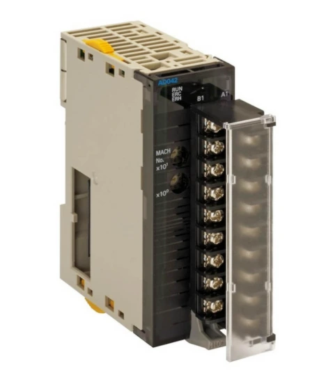 Omron CJ1W-AD041-V1 Analog Input Unit – 4-channel, multi-range voltage & current inputs, 13-bit resolution, compact screw-terminal design for CJ-series PLC systems.