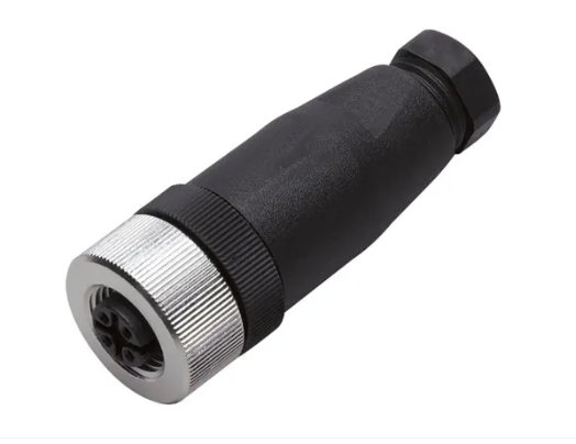 The E11508 M12 connector is a 4-pin straight attachable connector with nickel-plated brass nut, designed for reliable sensor and automation connections.
