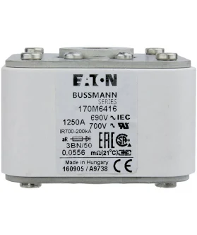Eaton Bussmann 170M6416 High Speed Fuse, square body, 1250 A, 690 VAC, size 3, aR, IEC/UL, single indicator.