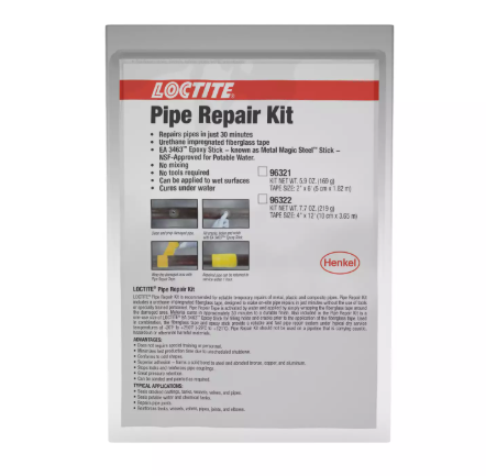 LOCTITE PC 5070 is a fast-curing emergency pipe repair kit designed for quick, temporary repair of metal, plastic, and composite pipes without special tools.