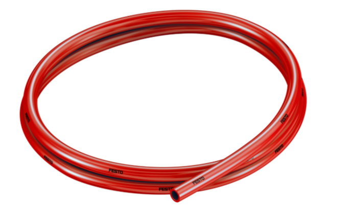 Durable red plastic tubing (8 mm OD) made from ether-based polyurethane. Ideal for compressed air and water in dynamic applications, with T?V certification and excellent flexibility.