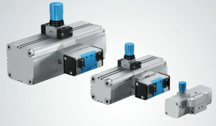 High-capacity pneumatic pressure booster with integrated air reservoir, designed to increase inlet air pressure from 2-8 bar up to an output range of 4-16 bar. Equipped with a pressure gauge, check valve, and condensate drain for reliable industrial performance.